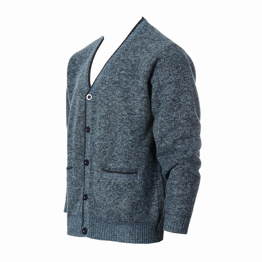 Cardigan Sweater with Soft Brushed Flannel Lining and Pockets - Navy