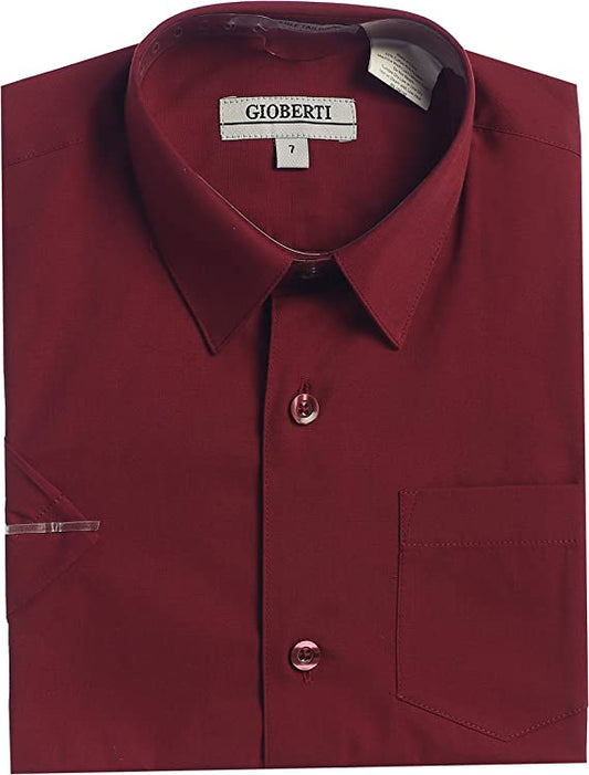 Boy's Short Sleeve Solid Dress Shirt -Burgundy