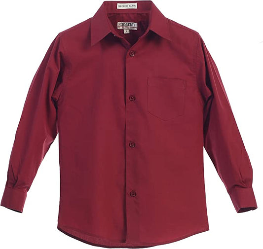 Boy's Long Sleeve Solid Dress Shirt -Burgundy