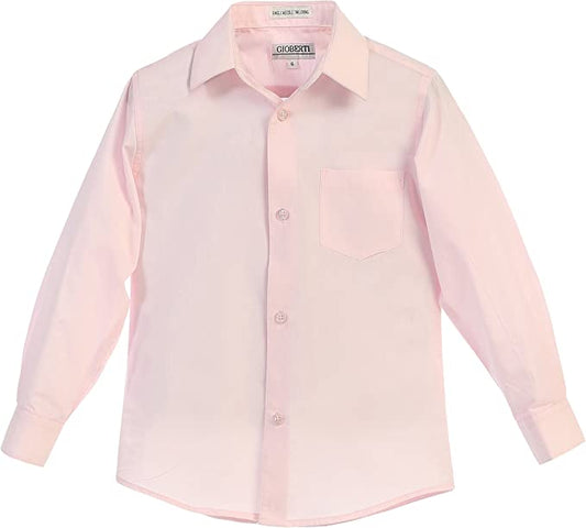 Boy's Long Sleeve Solid Dress Shirt -Pink