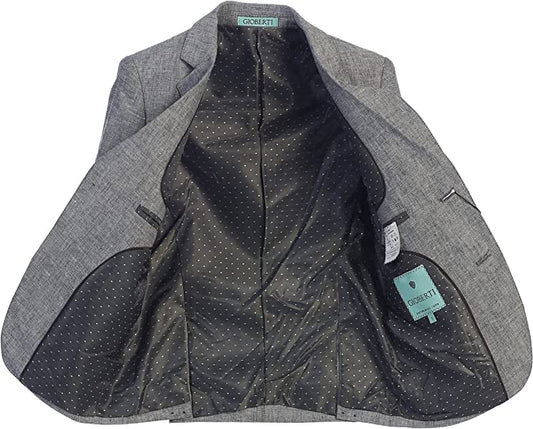 Boys Linen 2 Pcs Set Jacket And Dress Pants Gray Suit Gray Pants