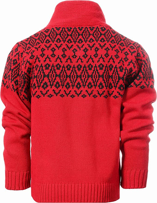 Pullover Knitted Sweater with Toggle Button Closure- Red