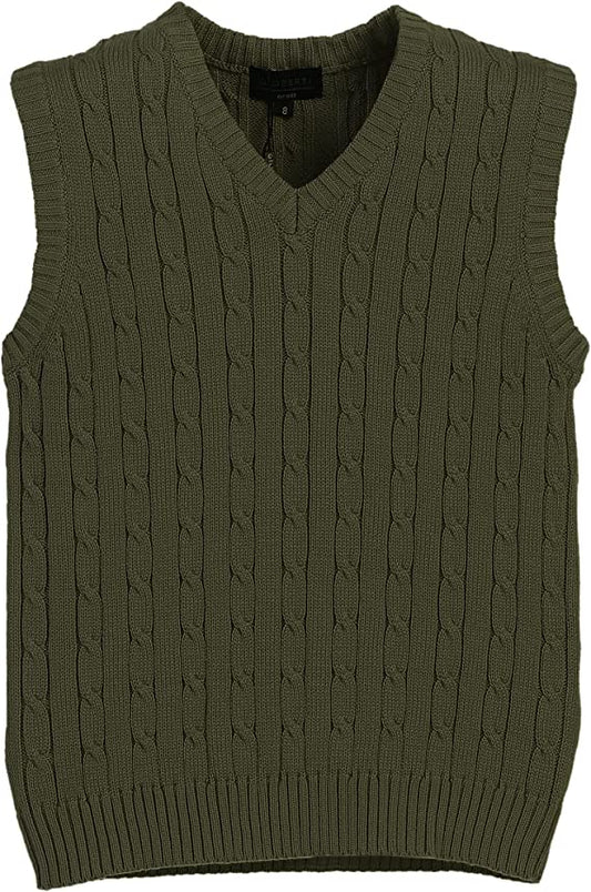 V-Neck 100% Cotton Knitted Pullover Sweater Vest- Olive