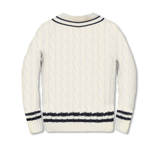 V-Neck Cable Knit Sweater 100% Cotton -White Off