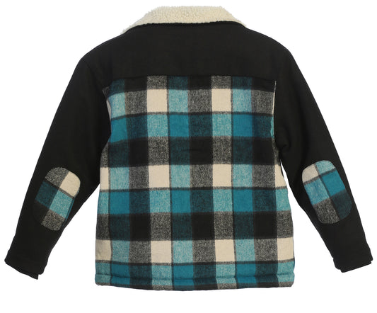 Full Zip Wool-Like Plaid Jacket with Warm Cozy Inner Padding and Sherpa Collar- Royal Blue